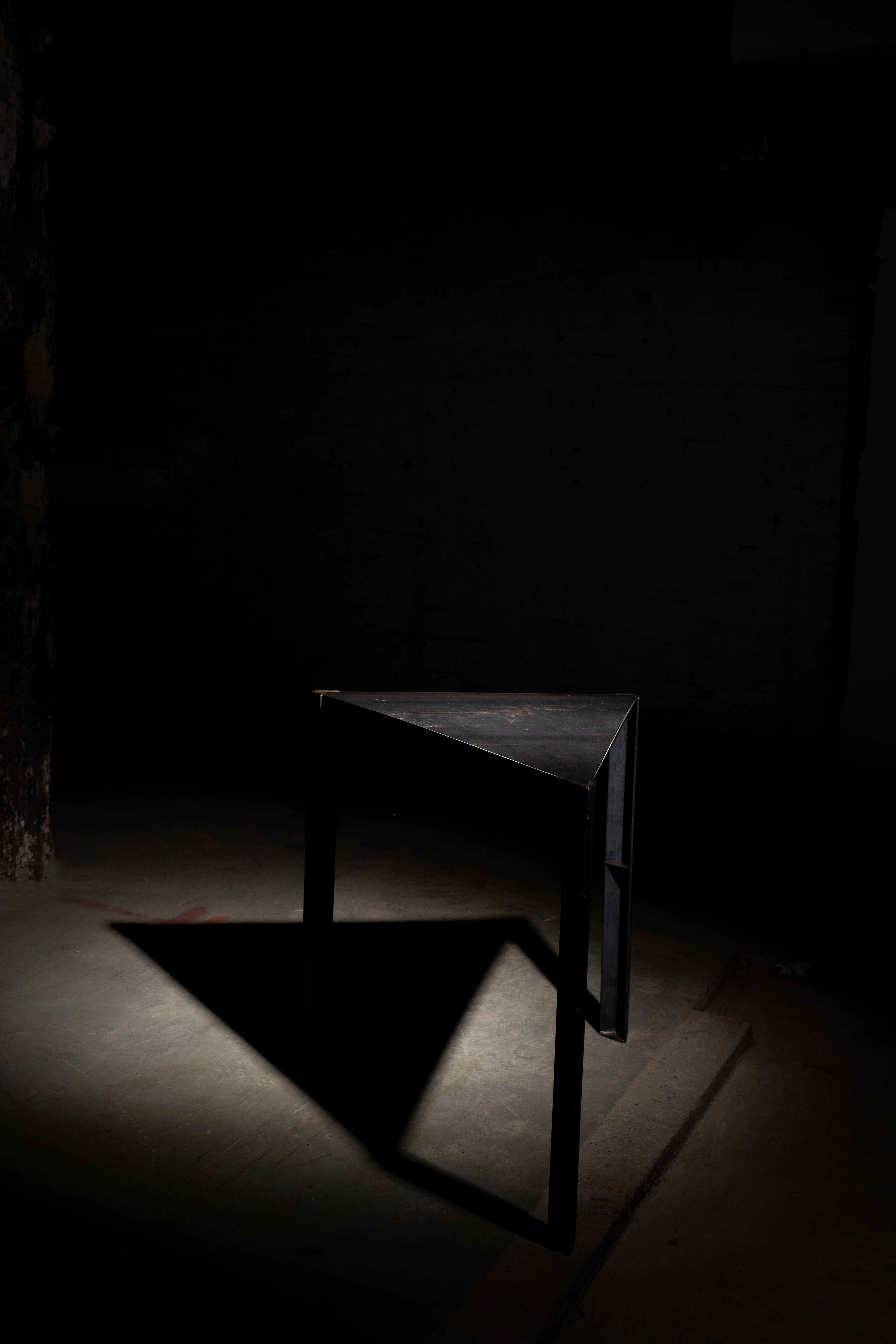 Dit is geen tafel voor fatsoenlijke gebruikers. Dit is een tafel waar de wet van de sterkste geldt en de meest schuchtere wordt weggespeeld. Wie het eerst gaat zitten heeft de beste plaats. Wie brutaal is bepaalt. De tafel zelf is ook bruut. Ze heeft geen zin om zichzelf te verbloemen. Ze is graag grof in al haar facetten. En ze laat de gebruiker toe om zijn brutale zelf te zijn.
