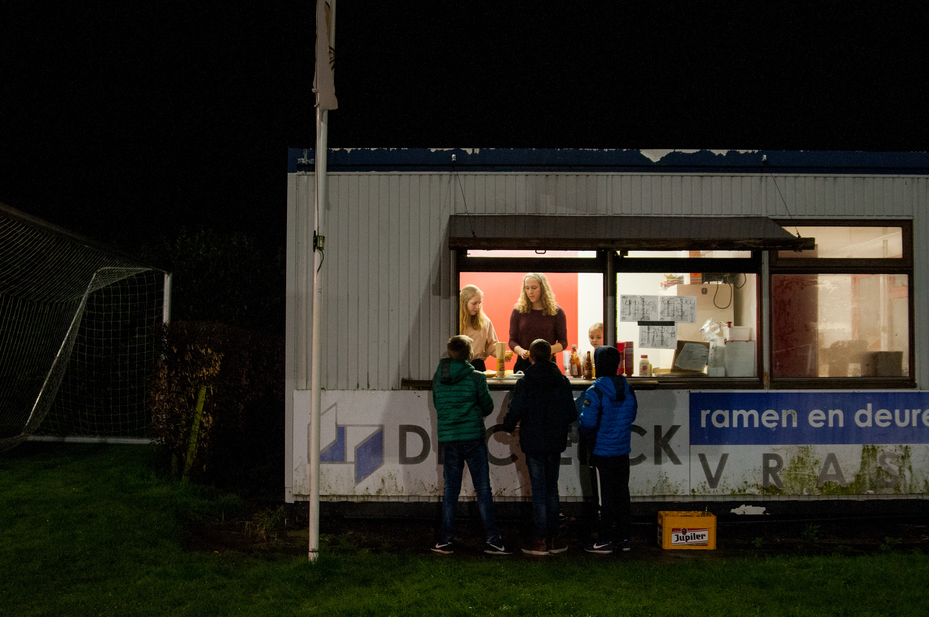 Tijdens mijn tweede jaar aan de KASKA ging ik voor een opdracht mee naar een wedstrijd op verplaatsing van YB SK Beveren, in het zonovergoten Wippelgem. De wedstrijd van deze voetbalploeg, die toen nog in 4e provinciale speelde, werd ruimschoots gewonnen, maar ik was vooral geïntrigeerd geraakt door de taferelen rondom. Toen ik in 2016 opnieuw op deze foto’s botste, kreeg ik het idee om hier een reportage rond te maken voor mijn eindwerk. Ik had dan ook net een reportage gedaan over het leven in het Kruibeekse café De Voermansrust, en al snel werd duidelijk dat de documentairefotografie mijn favoriete manier van fotograferen was geworden. Vooral de ongedwongenheid boeide mij: geen manipulatie, niets werd in scène gezet. De ruwheid van het alledaagse leven zorgt voor een niet na te maken filter die zich in de foto nestelt.